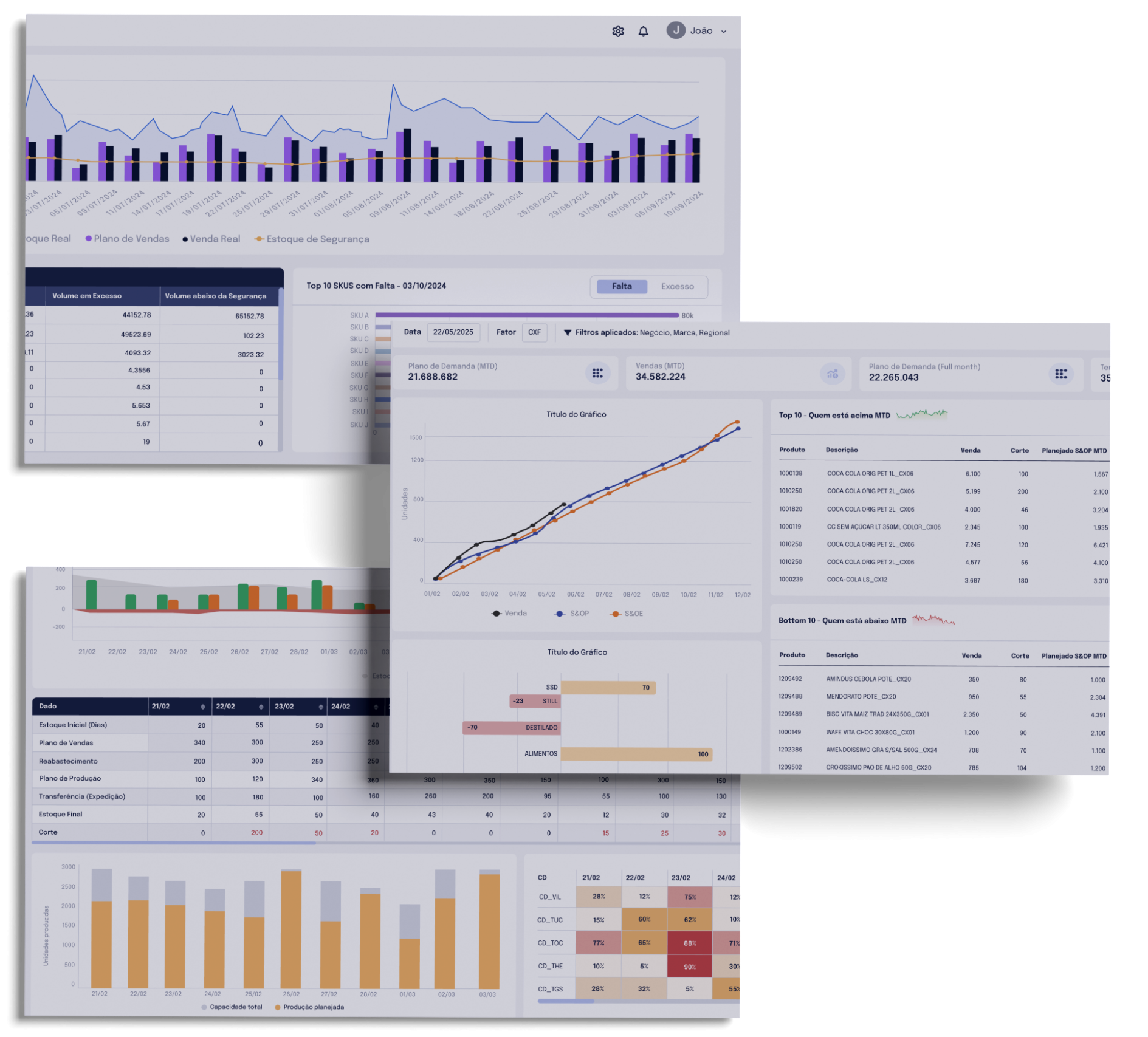 - Projeta estoques e calcula necessidades de reabastecimento diárias.